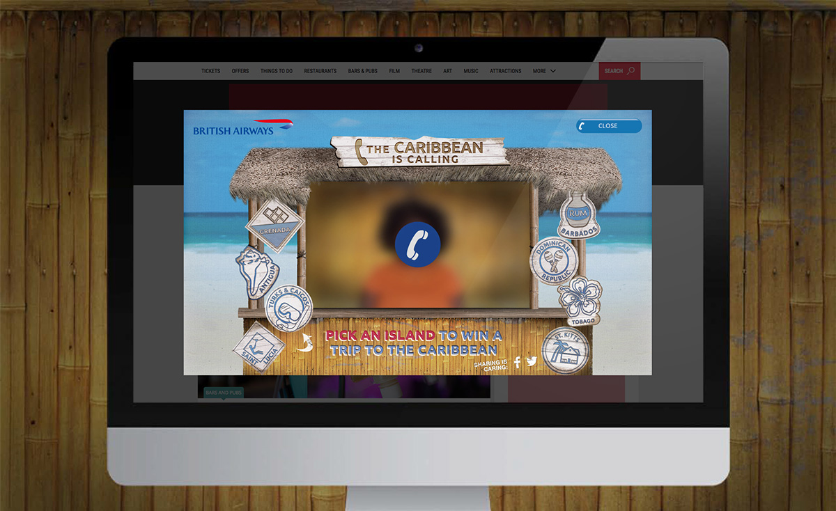 To raise awareness of British Airways Caribbean holidays a competition was run in partnership with Timeout. The concept was to bring out the unique personalities of each island, such as Rum for Barbados and a shell to represent Antiguas many beaches.